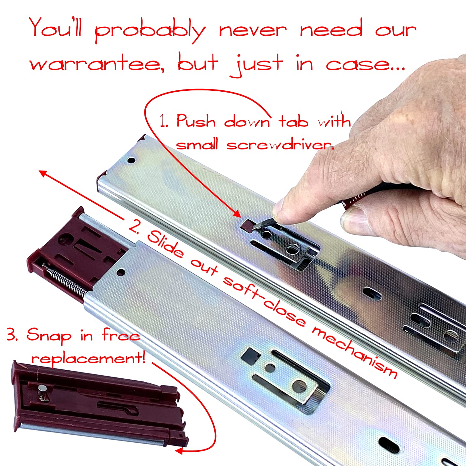 16 Heavy Duty Soft Closing Ball Bearing Drawer Slides 100 Lb Capacity Side Mount Glides W Screws Amazon Com